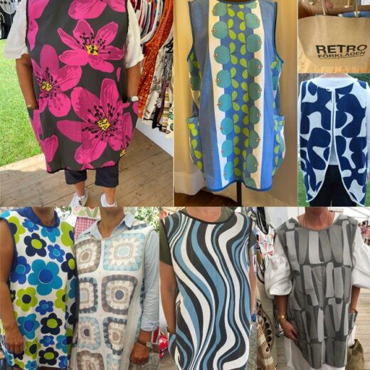 Retroförkläden med 50- ,60- & 70-talskänsla som jag syr av secondhandtyger (återbruk) med två stora fickor. Tål 60-graders tvätt och knäpps i nacken. Modellen passar de flesta.